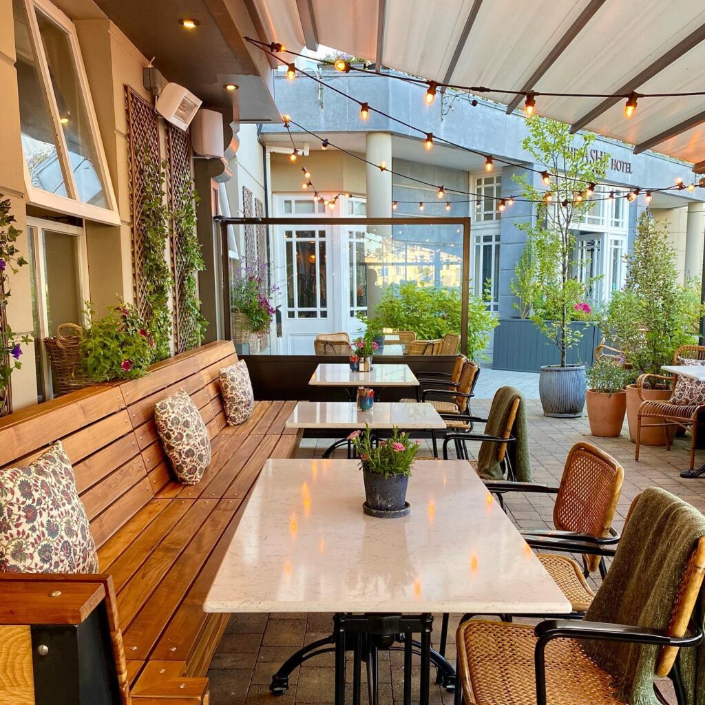 Only access to the outside Garden Terrace for dining, dogs are not allowed to enter the bar or restaurant area with the exception of service dogs. Our little brother Roundy’s Bar (located across from The Ashe Hotel is dog friendly and has water bowls and treats for your dog to enjoy while you have a drink)